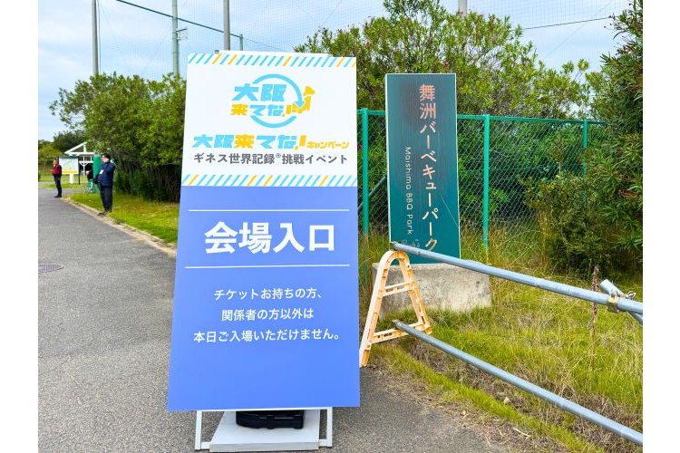 本イベントでは、「同時に鉄板焼きを作った最多人数」に挑戦し、ギネス世界記録を目指しました。会場となった舞洲バーベキューパークには参加者が続々と集まり、約1,000人の熱気で朝早くから活気にあふれていました。