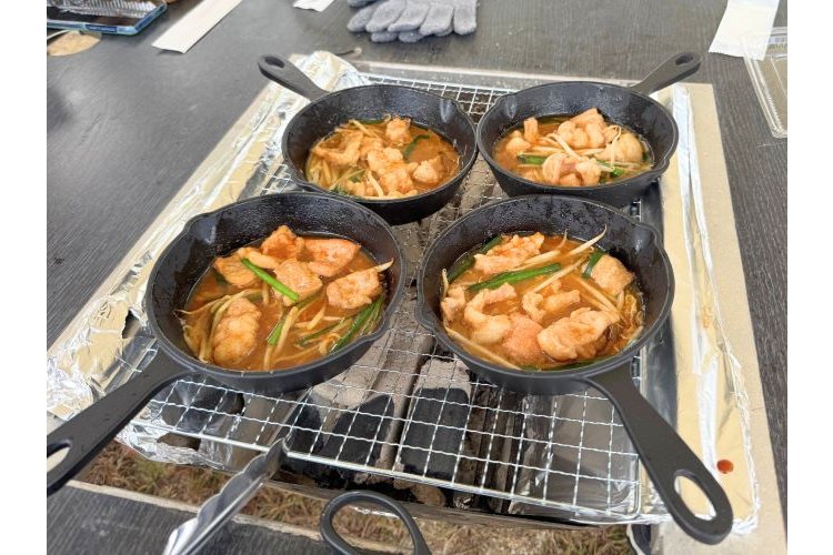 トラバリーさんの合図とともに一斉に調理が始まり、会場全体が鉄板焼き作りに集中する熱気に包まれました。