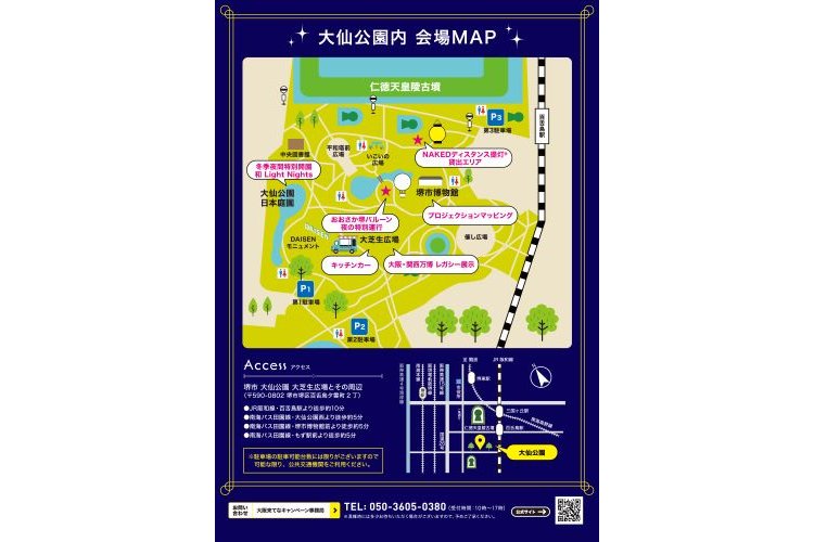 世界遺産に隣接する大仙公園では今年、日本庭園、気球、大芝生広場が一体となり、幻想的な夜景を創出します。是非、「DAISEN Night Balloon Festa」に足をお運びいただき、日本庭園の夜間ライトアップや気球からの眺望とともに、食事をお楽しみいただければ幸いです。