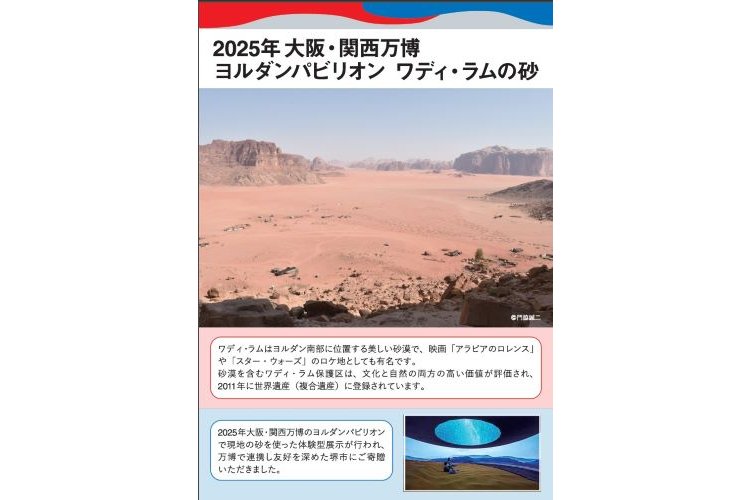 ヨルダンパビリオンで展示されていたワディ・ラム砂漠の砂が展示され、