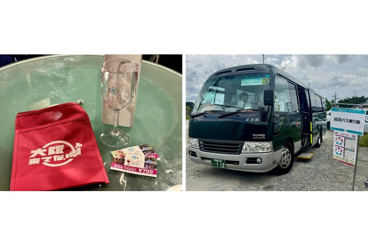 また、3つのワイナリーと近鉄古市駅・河内国分駅を結ぶ無料シャトルバスも運行され、バス停ではワインチケットも販売されました。
